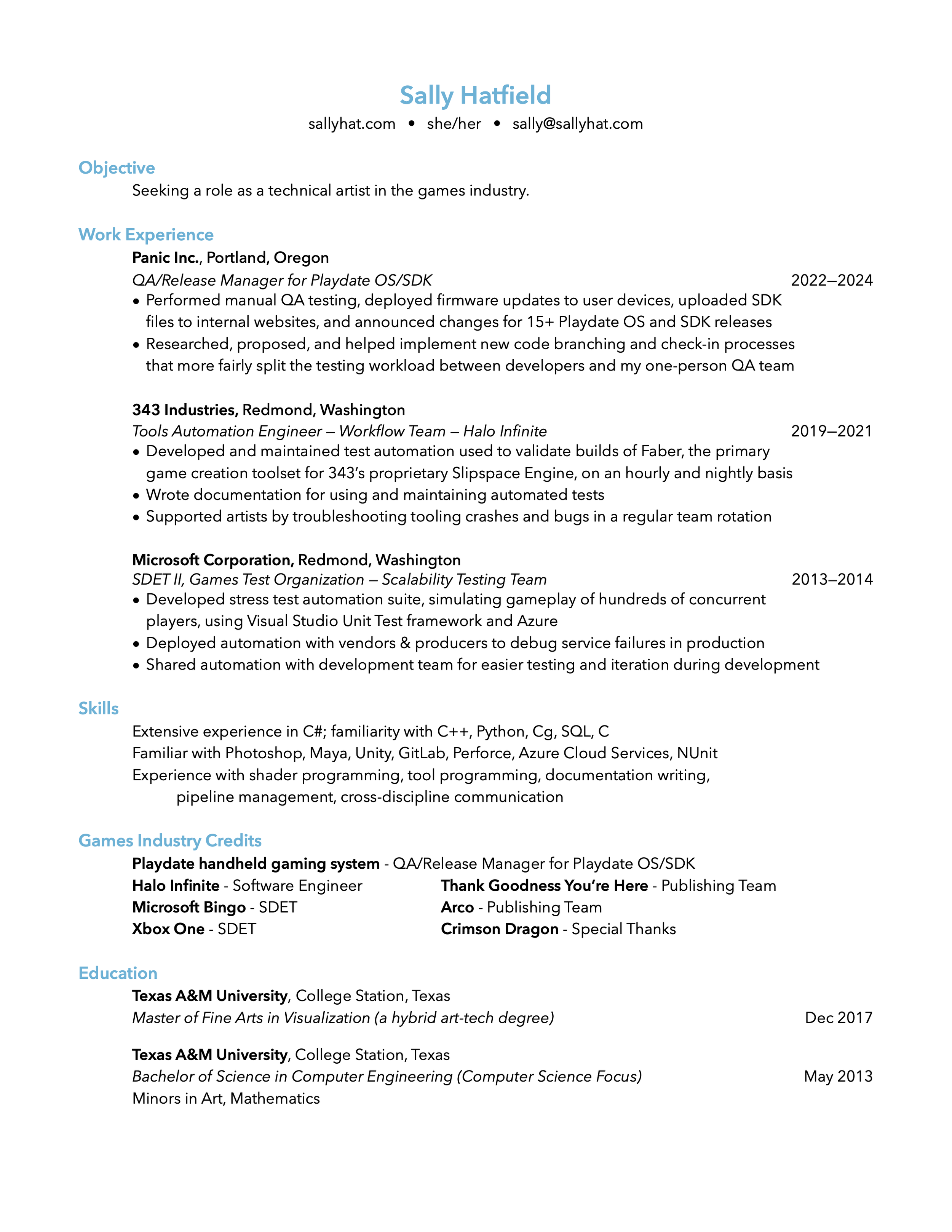 This is a generalized technical resume, and does not include all experience and skills I can offer. For a tailored resume for a particular position, please contact me!